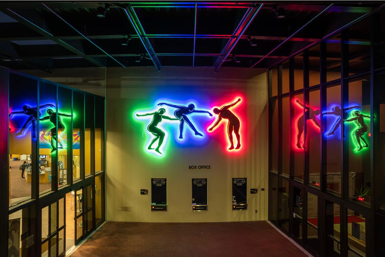 This backlit, powder-coated stainless steel wall relief features three figures in perpetual motion, reflecting the dynamic energy of Caribbean folk dance. The figures are subtly overlaid with the topography of Lauderhill, grounding the piece in its community context.